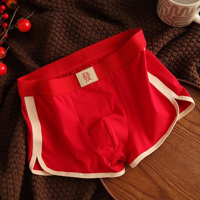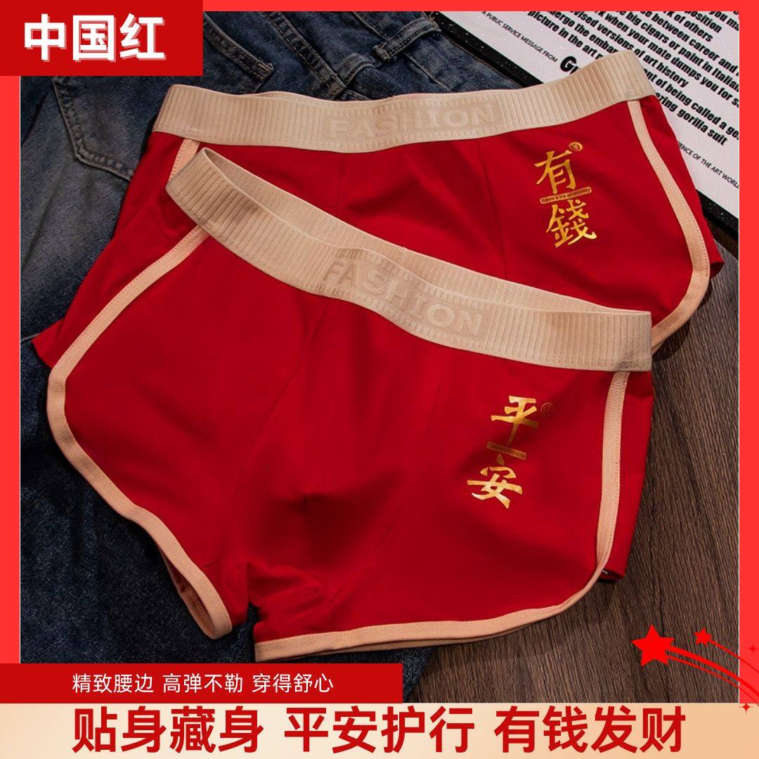 新款本命年内裤男士红内裤结婚喜庆纯棉透气大红短裤男生平角裤头