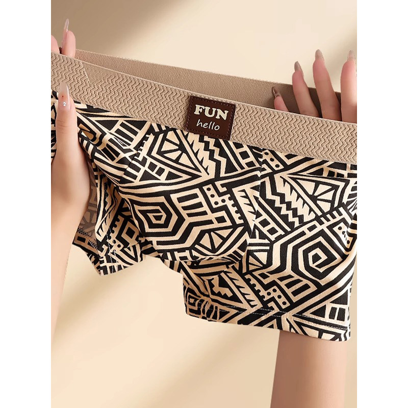 维多利亞纯棉内裤男士2025新款莫代尔几何复古平角裤透气四角短裤