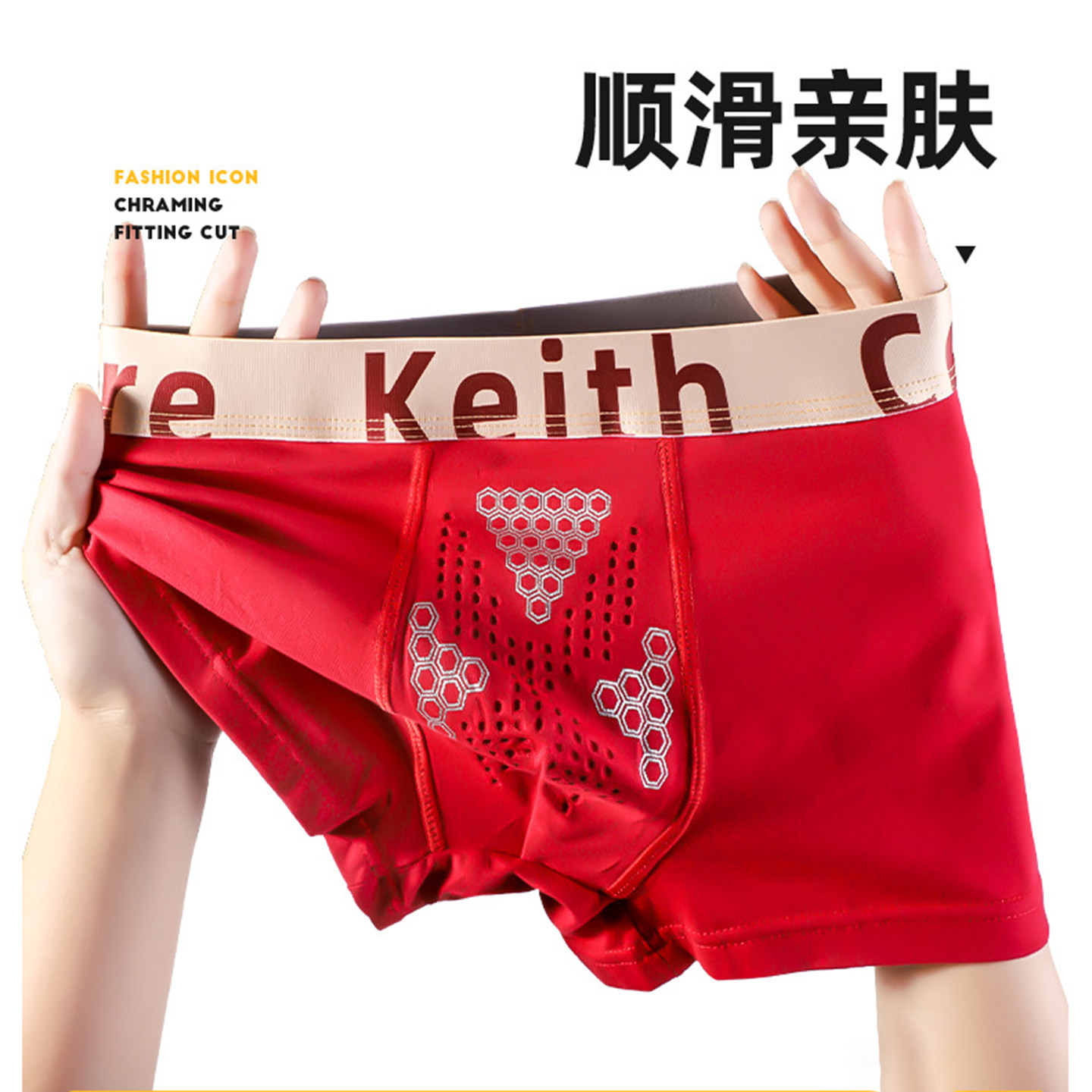 个性螺纹男士内裤莫代尔7A抑菌新款红男四角短裤高档透气男款裤头