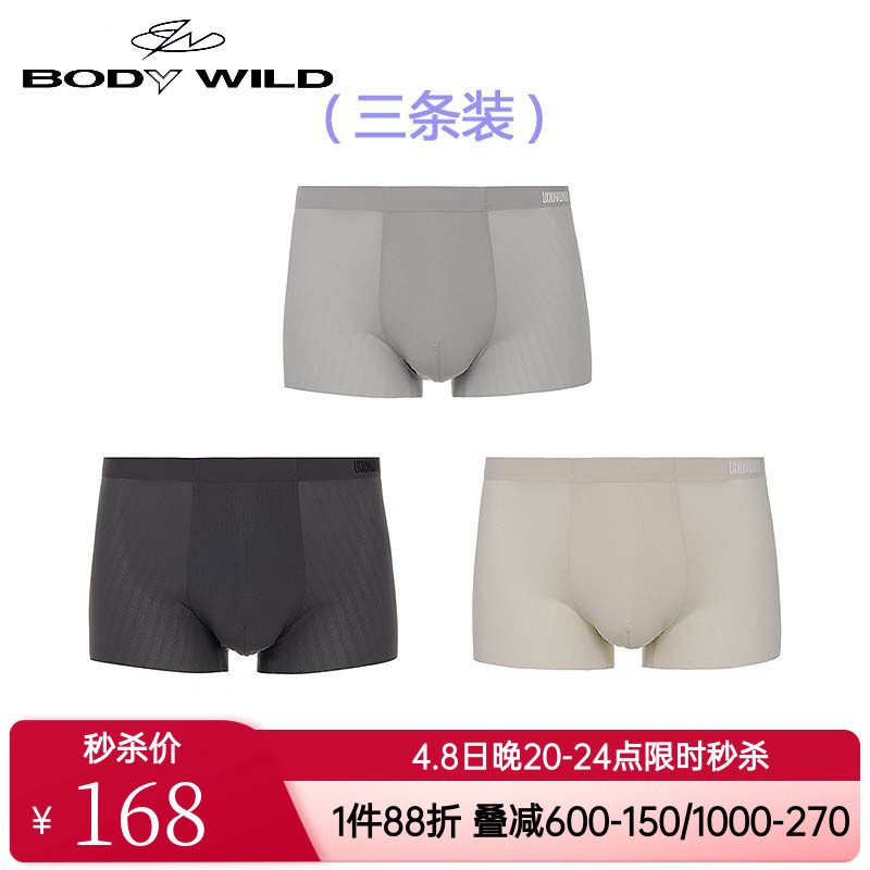 3条装 爱慕旗下宝迪正品男士款透内裤抗菌无痕凉感平角裤ZBN23CU1