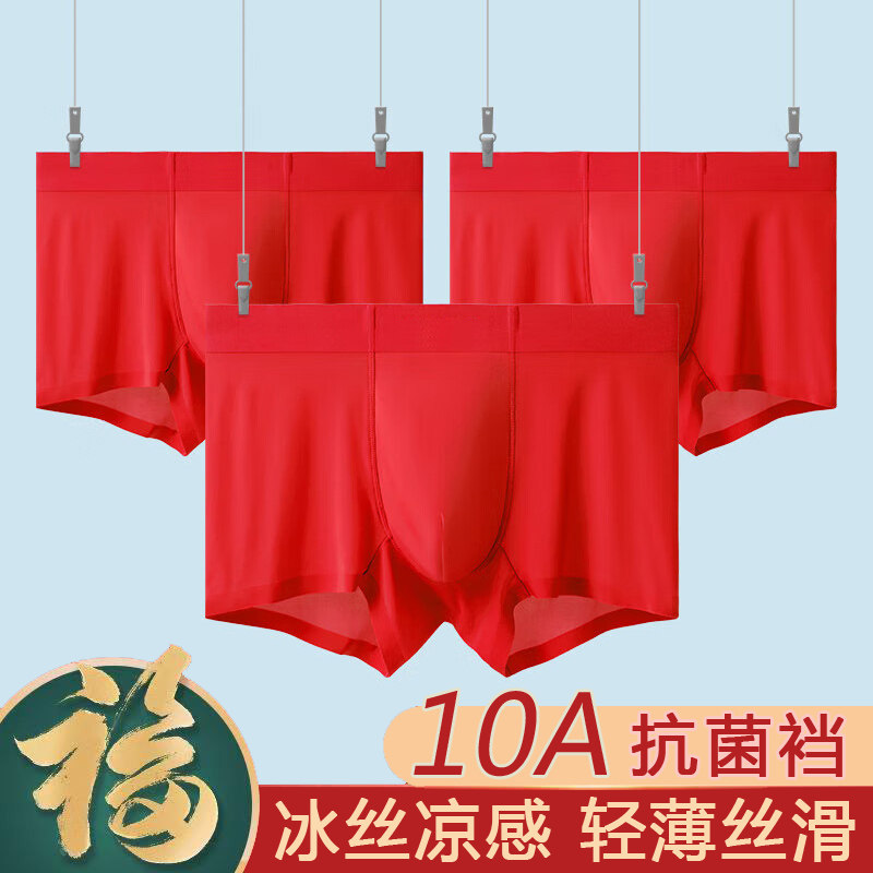 男士冰丝无痕内裤男生大红色本命年平角短裤头抗菌裆透气四角裤衩