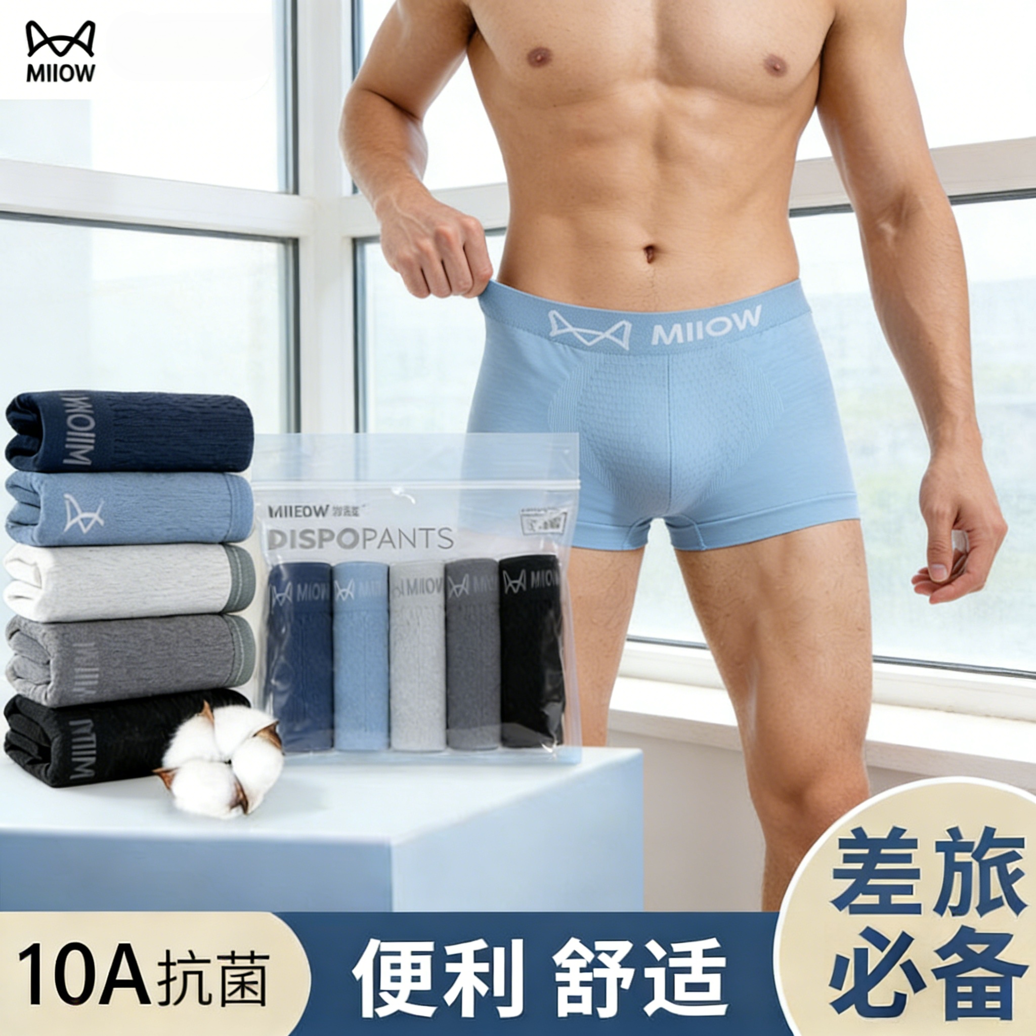 猫人一次性一体内裤男士平角灭菌男款大码日抛免洗短裤出差旅行