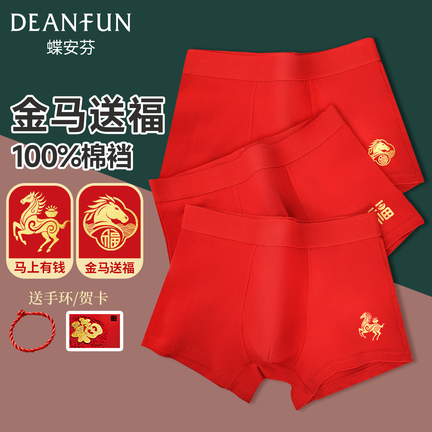 蝶安芬本命年红色男款纯棉内裤四角全棉裆属马2026马年大码平角裤