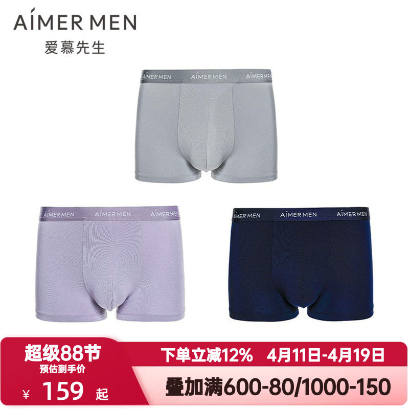 3条装 爱慕先生HELLO裤系列U型内裤男士薄舒适莫木代尔抗菌平角裤