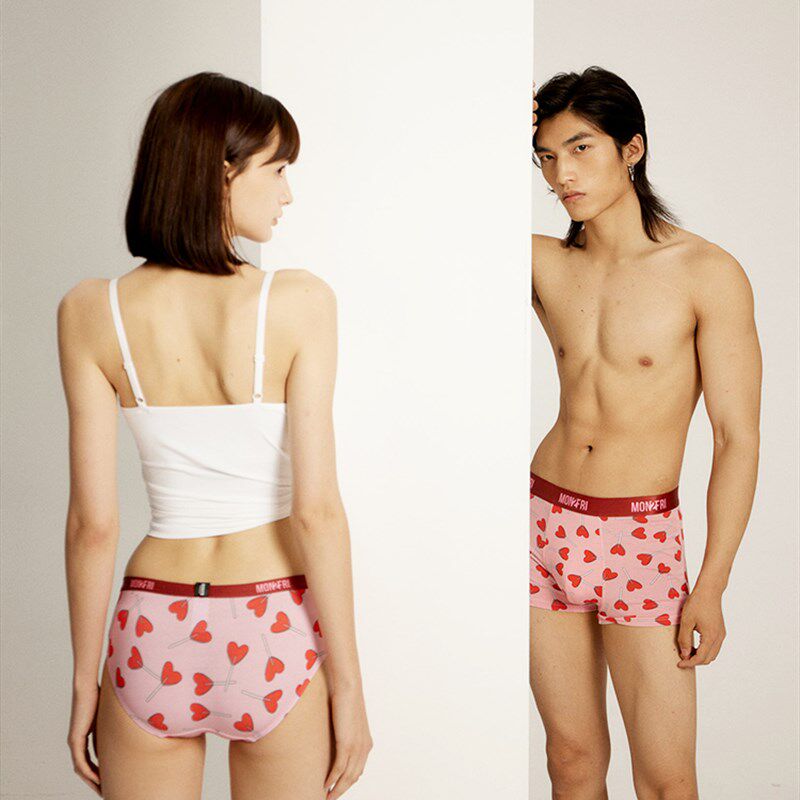 mon2fri男士内裤爱心粉色四角裤情人节送男生情侣礼物礼盒仪式潮