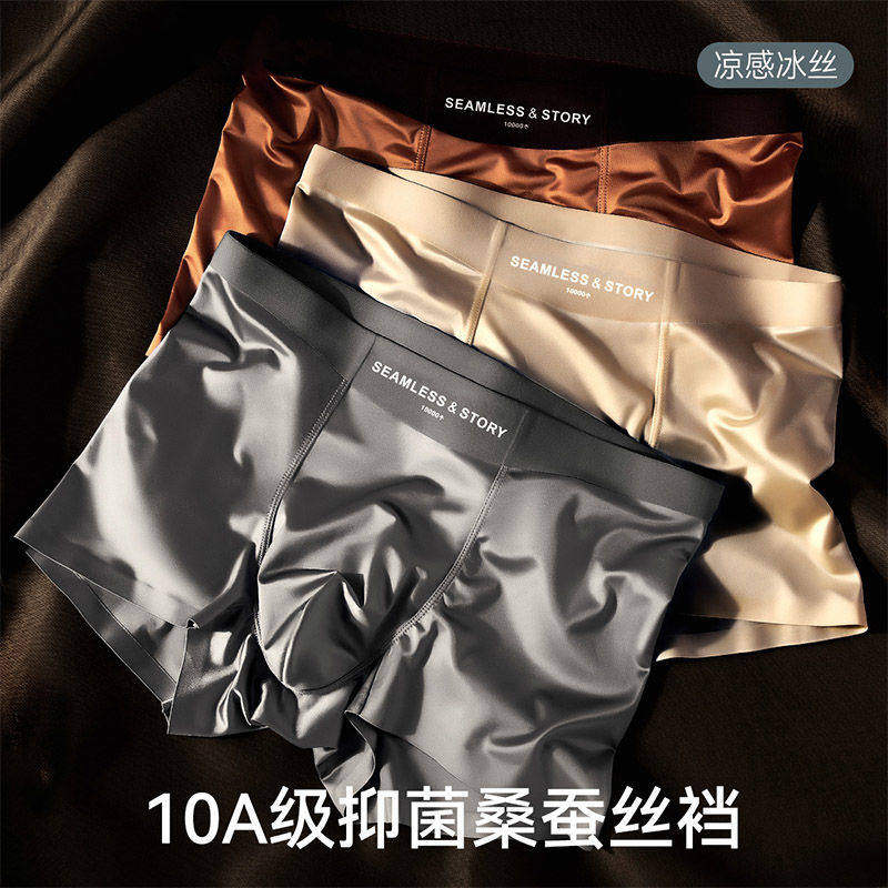 轻奢缎面男士冰丝内裤桑蚕丝抑菌内裆无痕裸感透气男生四角平角裤