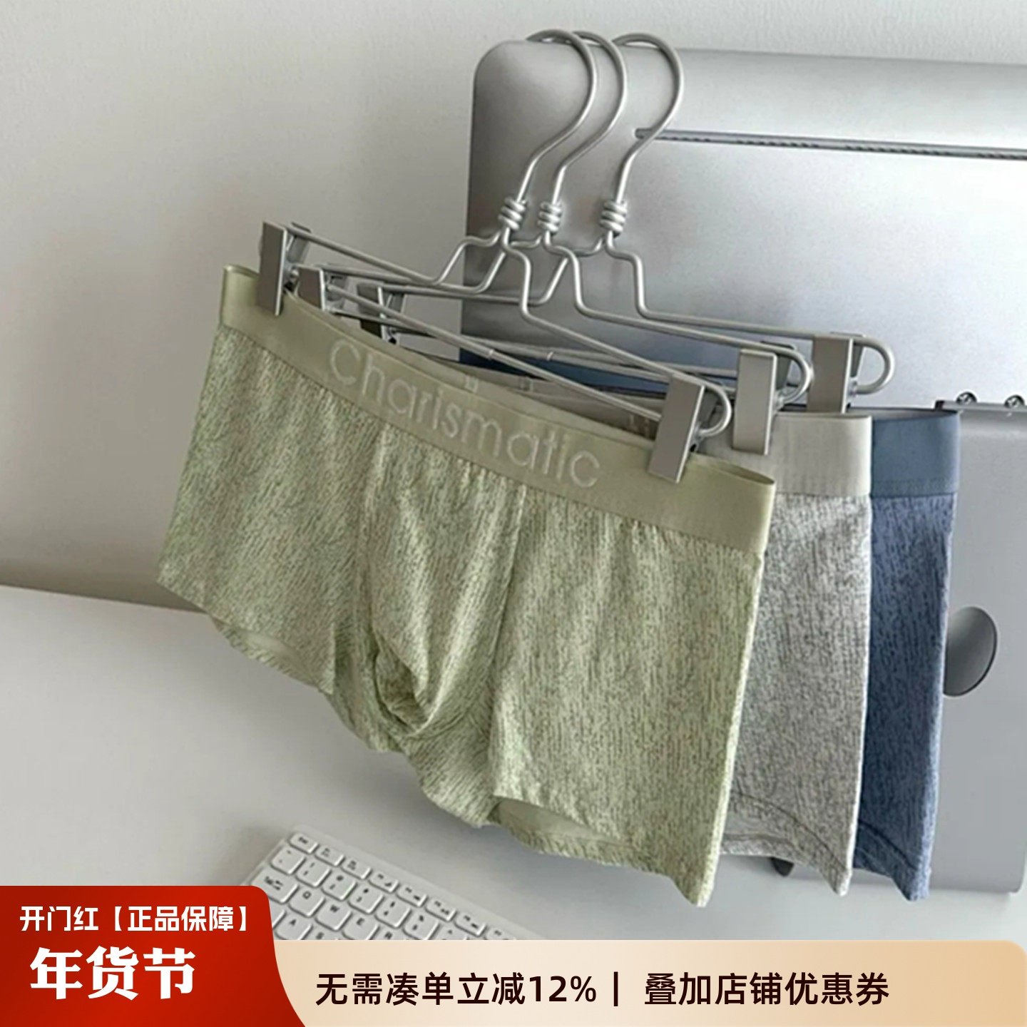 【下单立减50】潮流小马印花红色个性男士内裤中腰四角短裤衩_YB