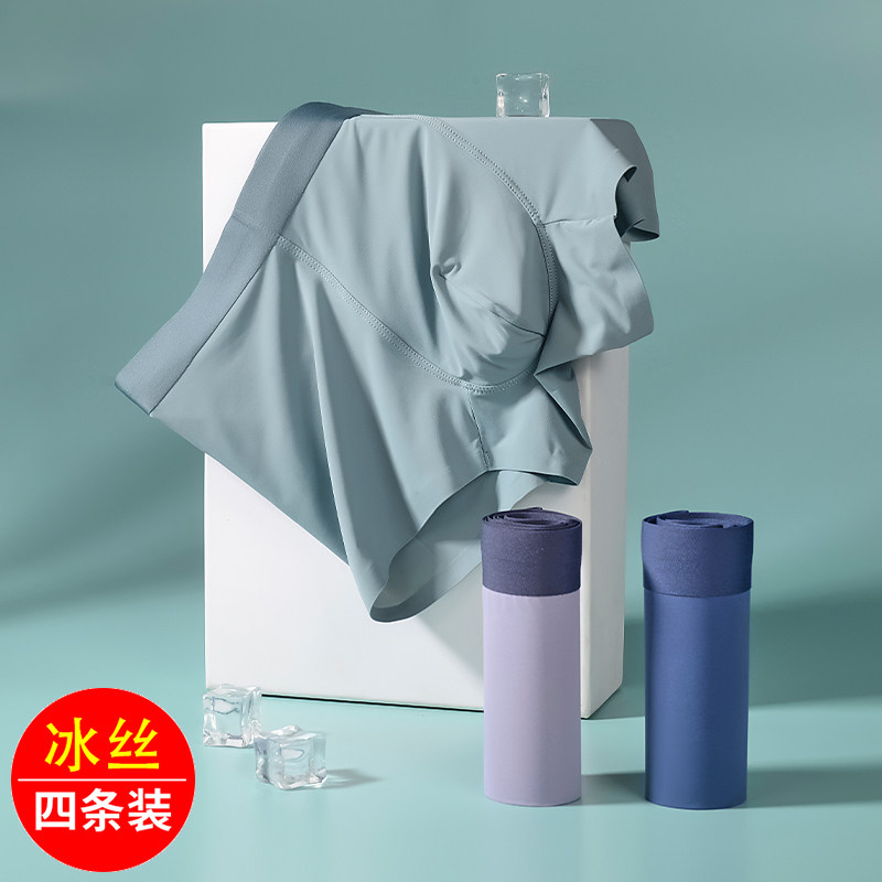 4条新款男士冰丝内裤轻薄透气无痕四角裤青少年纯色平角运动短裤