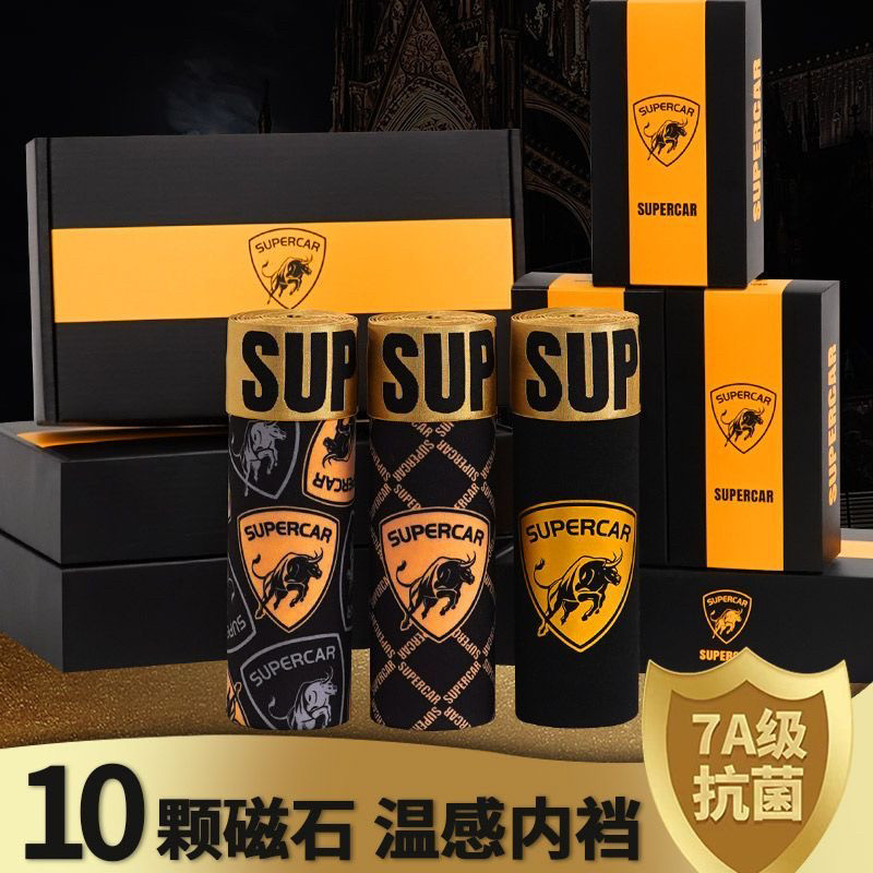 【新升级10颗磁石】3条装男士内裤透气7A抗菌男平角裤高档礼盒WZ