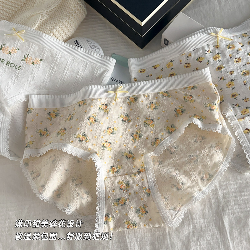 奶油婴儿棉内裤女纯棉全棉抗菌裆无痕柔软透气日系中腰少女生短裤