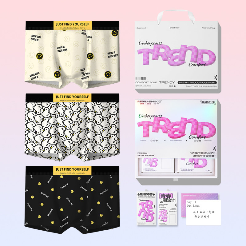 CleverKiss男士内裤100支莫代尔桑蚕丝10A抗菌纯棉透气四角裤礼盒