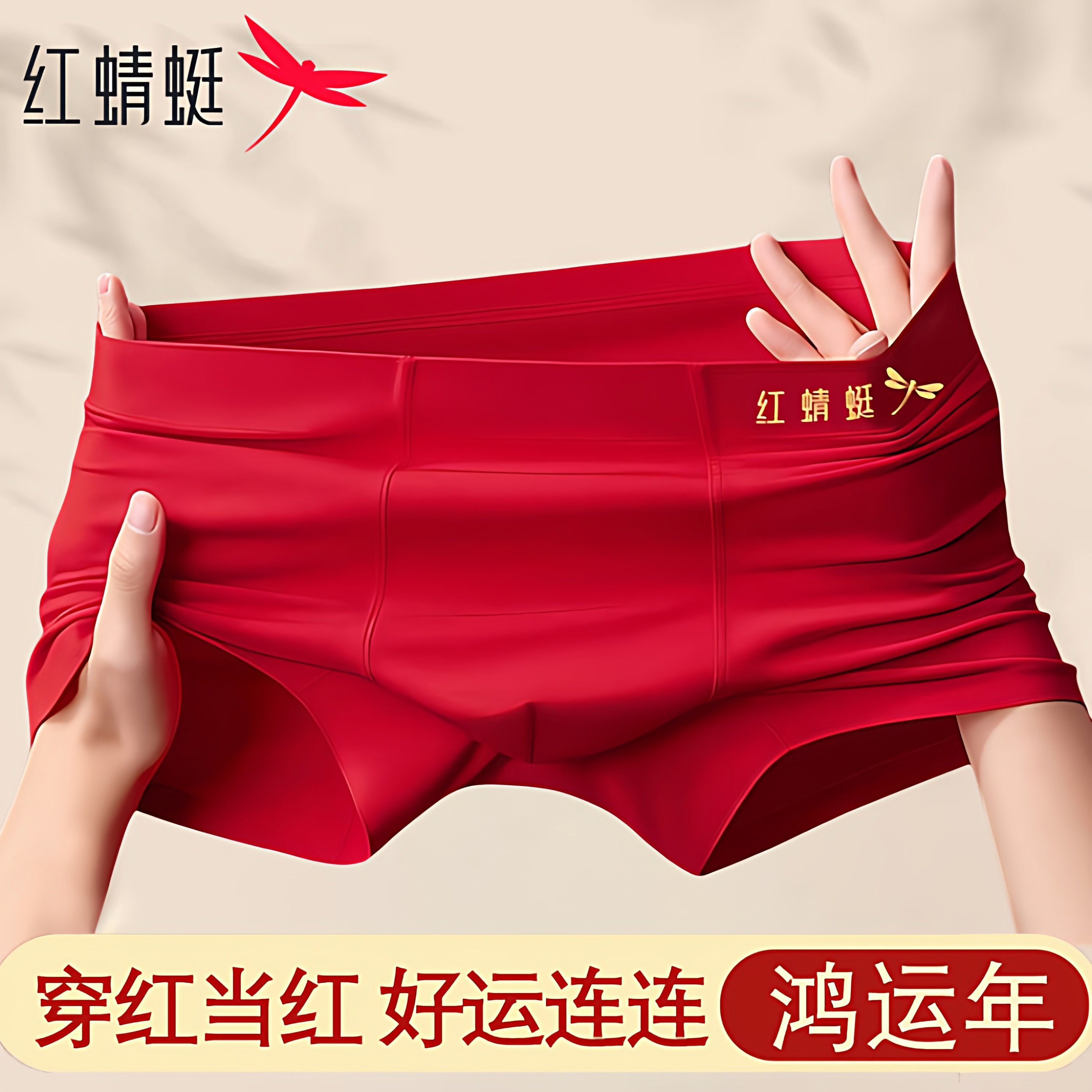 红蜻蜓男士内裤2026新款男生红色属马年结婚莫代尔平角四角短裤头