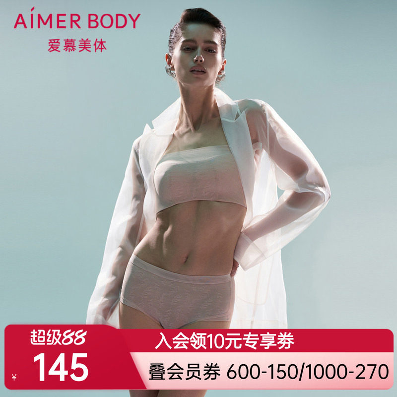 爱慕美体凉风夏梦内裤女底裆性感蕾丝高腰平角裤AD230451