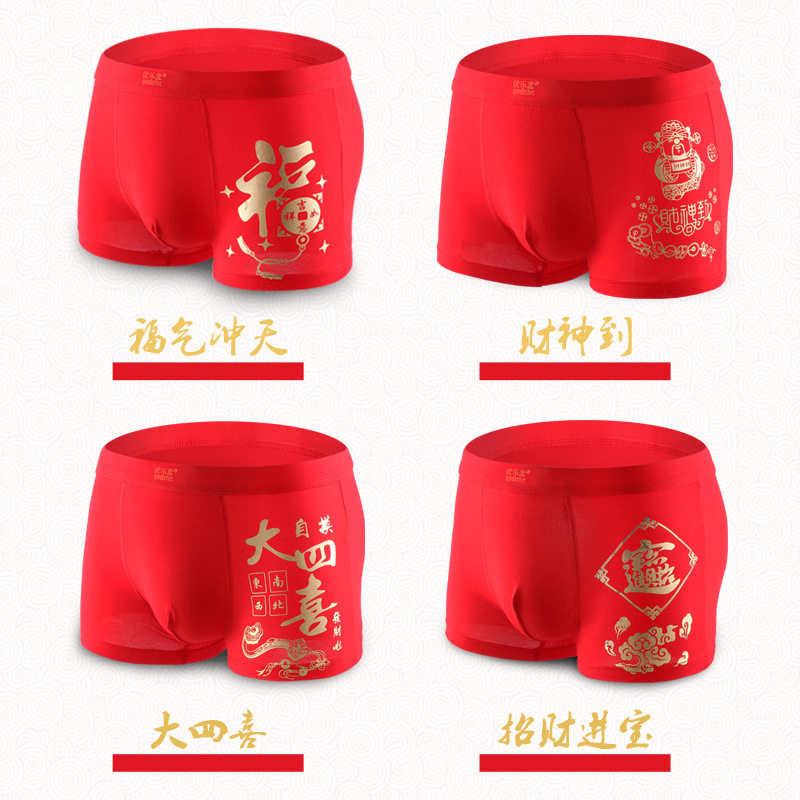 棉花共和国本命年男士红内裤莫代尔纯色平角裤鸿运系列男
