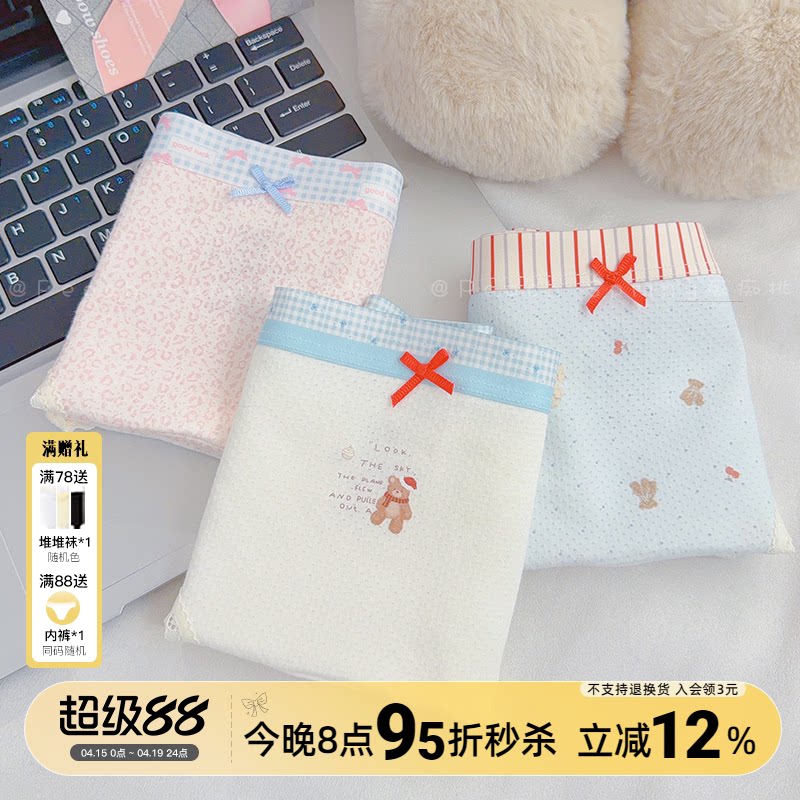 棉文化内裤女纯棉新疆棉100%全棉抗菌中腰平角裤薄透气少女卡通