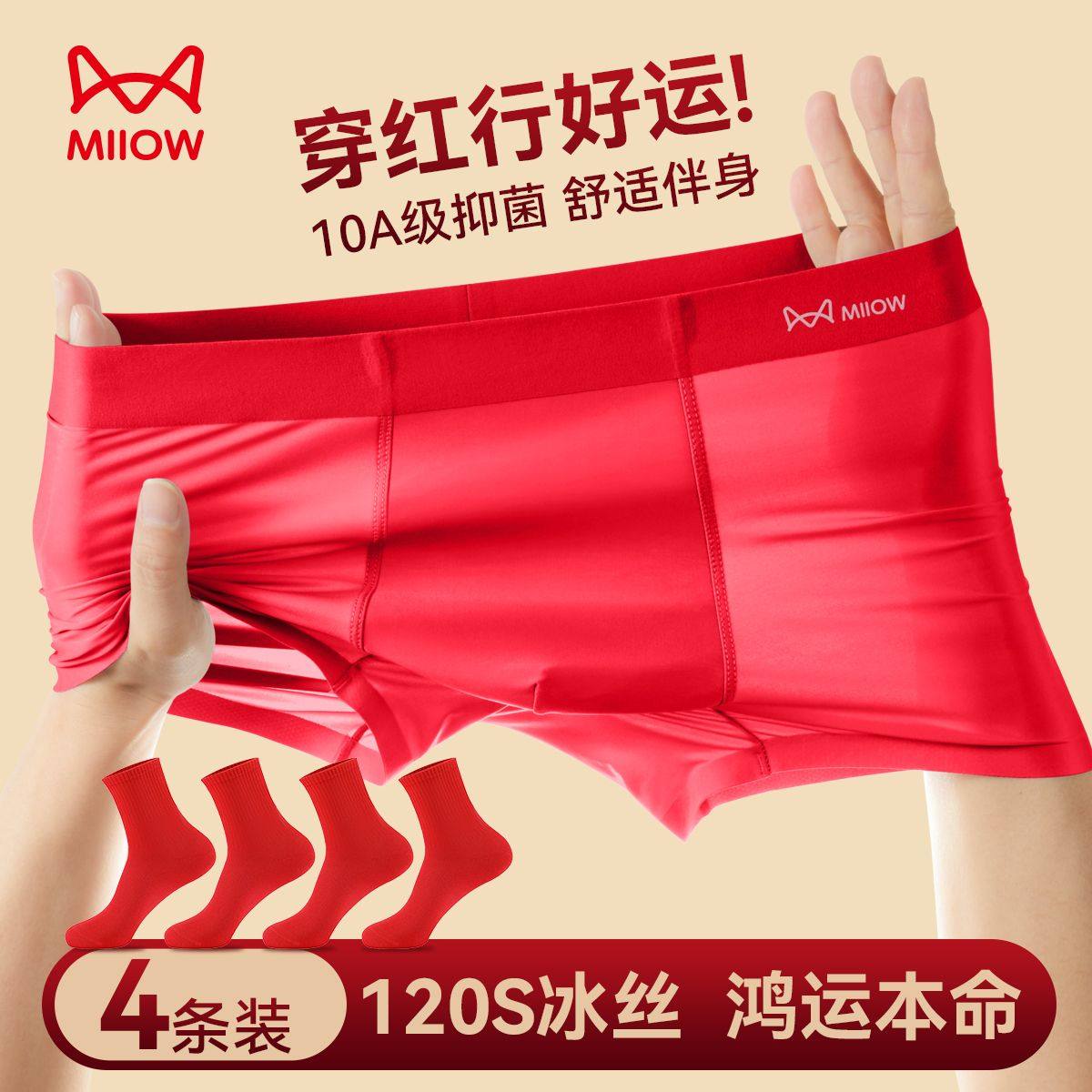 2026马年新款男士内裤鸿运抑菌裆本命年红纯棉男内裤舒适四角裤男