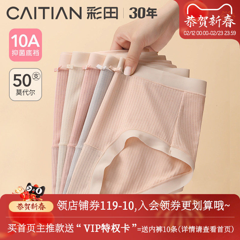 彩田内裤女士抗菌底裆中腰女生大码时尚包臀条纹秋冬透气三角短裤