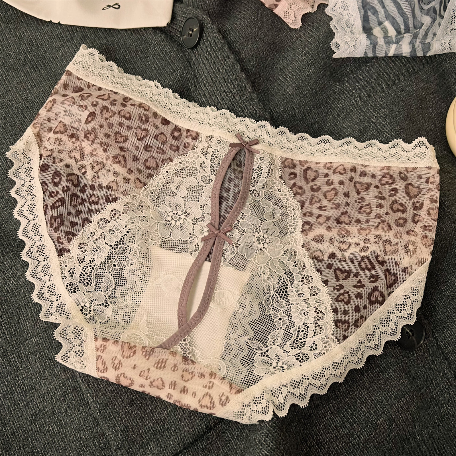 性感细带豹纹蕾丝内裤女士纯棉裆2025新款低腰透明镂空纯欲三角裤