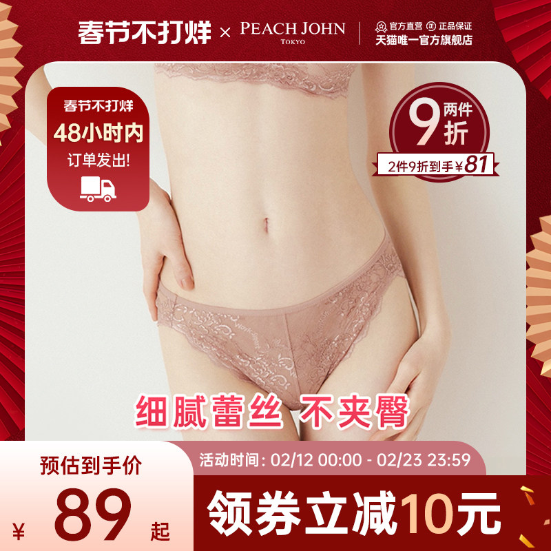 PEACH JOHN/蜜桃派女士内裤不卷边防夹臀性感蕾丝棉裆三角内裤