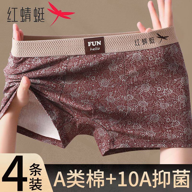 本命年红色男士纯棉内裤新年红运舒适四角秋冬男生潮流平角短裤衩