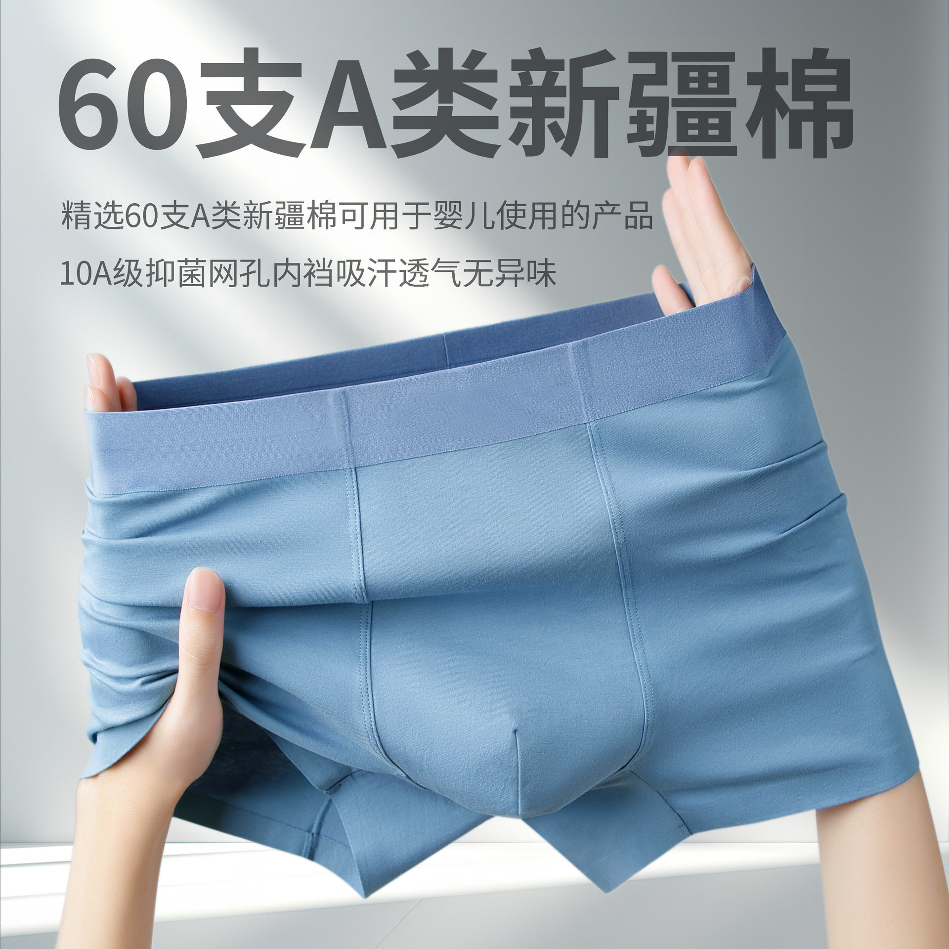 日本优品内裤男新疆长绒棉无缝全棉纯色平角裤透气抗菌男中腰内裤