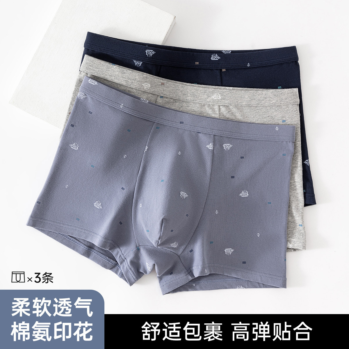棉元素男士内裤纯色弹力棉质中高腰舒适宽松男生平角内裤M2457