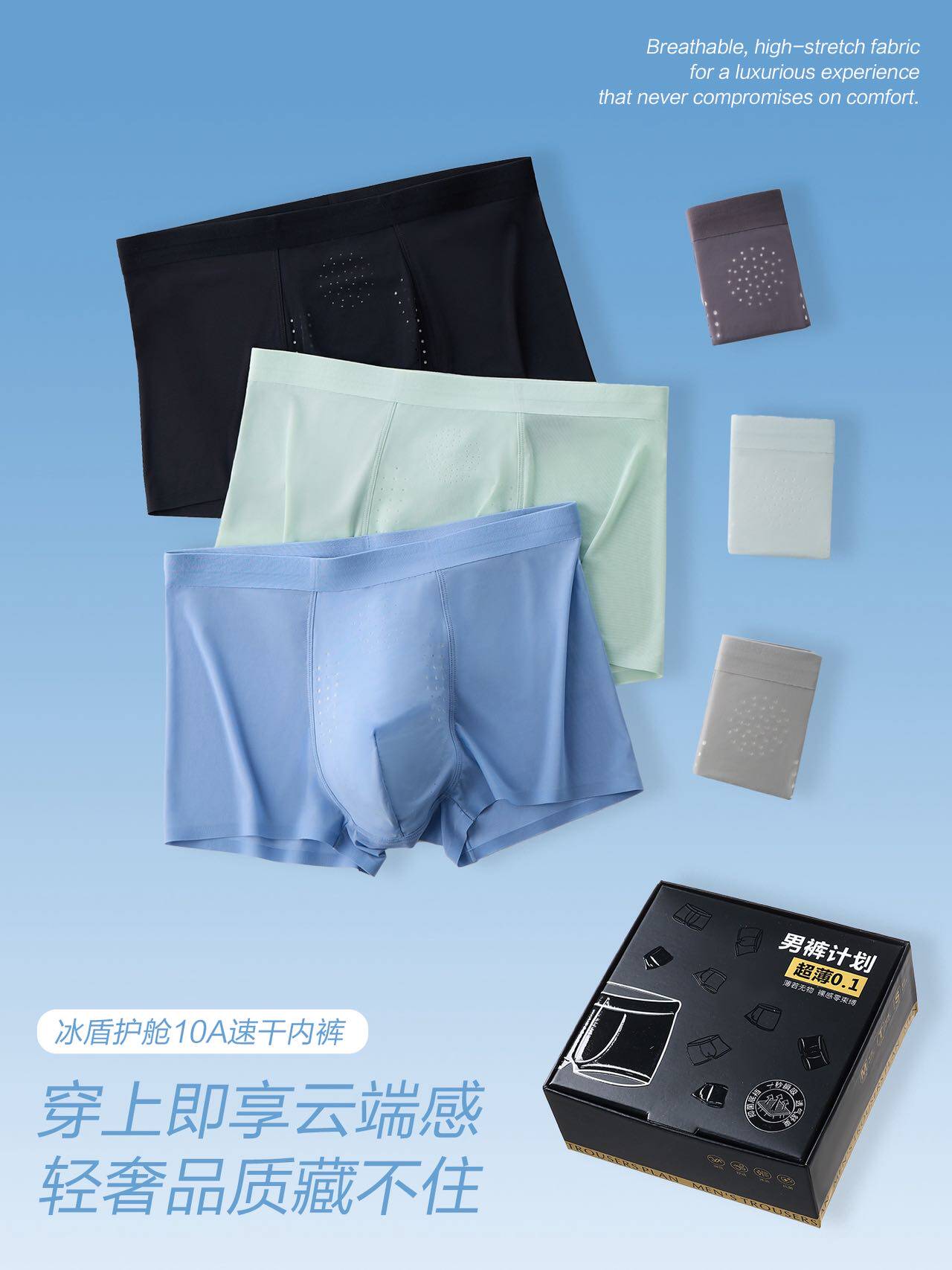 冰丝男士内裤夏季薄款男生平角轻薄抗菌透气无痕大码四角裤衩短裤