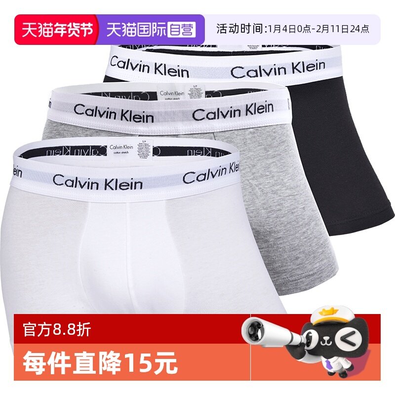 【自营】Calvin Klein/凯文克莱男士平角内裤CK简约舒适3条装