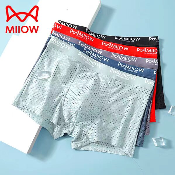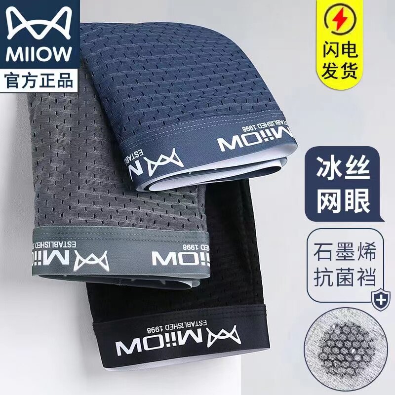 猫人正品男士冰丝内裤男裆石墨烯抗菌纯黑色平角四角裤头男短裤头
