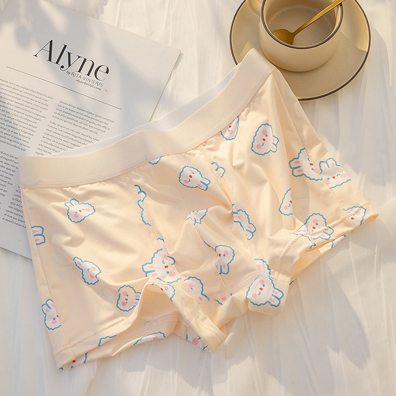男士卡通兔子内裤时尚潮印花青年四角裤牛奶丝男生棉裆中腰平角裤