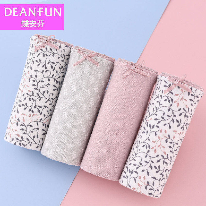 蝶安芬女士内裤莫代尔中低腰清新绿色圆点印花透气蕾丝性感三角裤