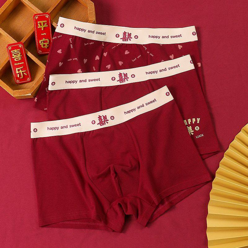 本命年过年男士混合情侣内裤棉喜庆大红结婚内裤平角裤三角内裤男