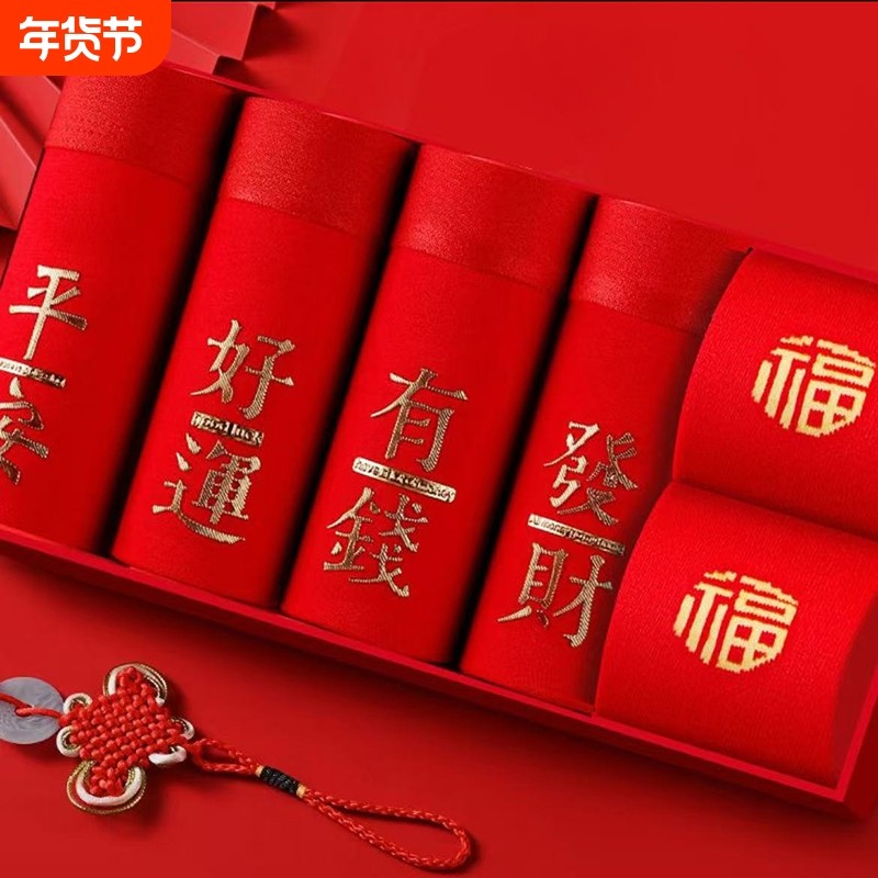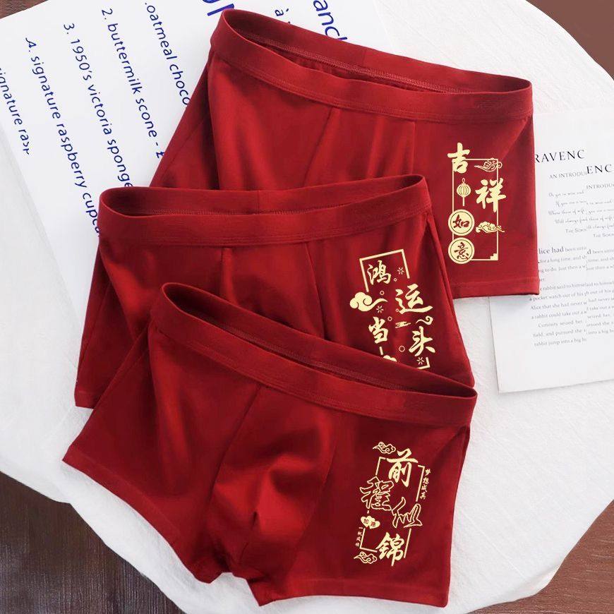 本命年男士内裤纯棉马年红色平角透气结婚喜庆舒适四角短裤裤衩