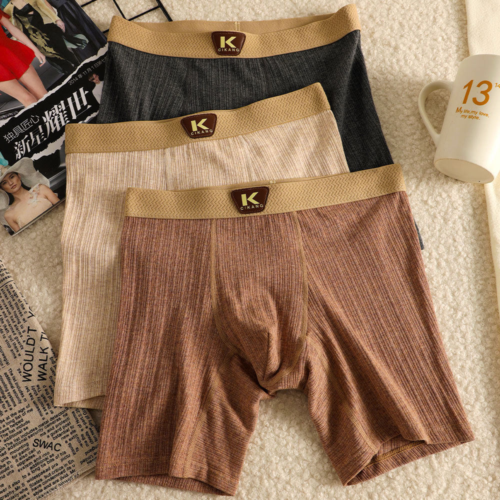 缇娅朵正品3条装男士羊绒暖感无痕发热平角内裤抗菌棉裆四角裤头