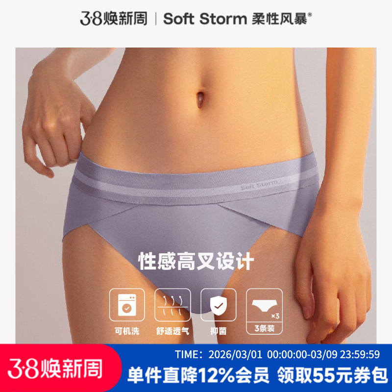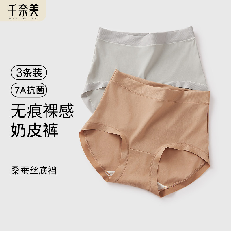 (3条装)冰丝无痕内裤女薄款亲肤桑蚕丝抗菌裆甜美少女生中腰裤