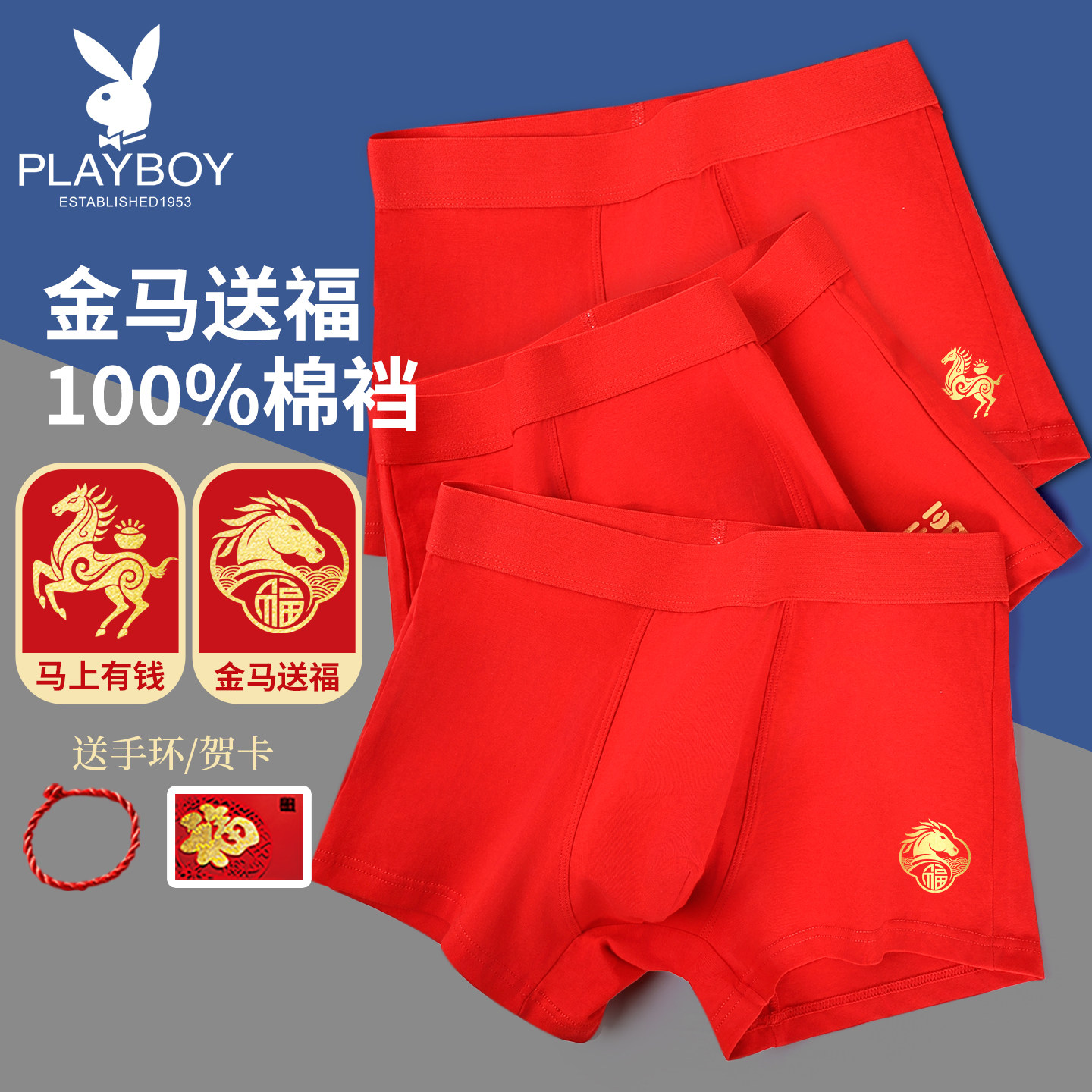 花花公子男士本命年红短裤属马年纯棉四角内裤全棉裆平角裤头裤衩