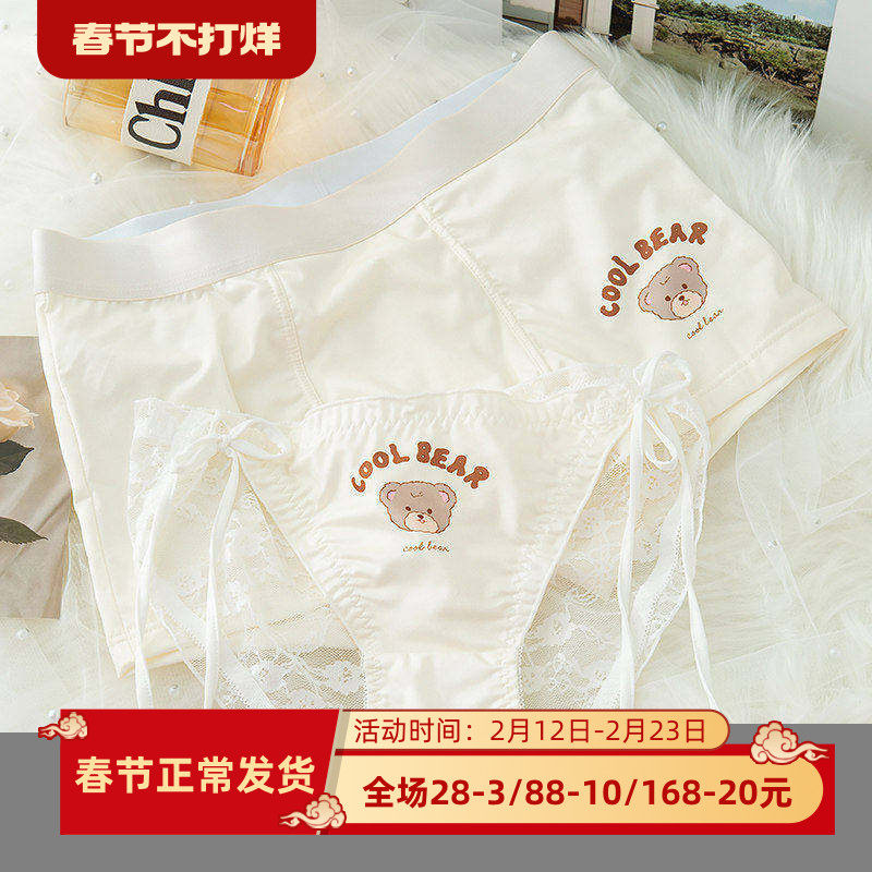 系带情侣内裤一男一女性感蕾丝一对男士女士可爱风卡通熊三角裤衩