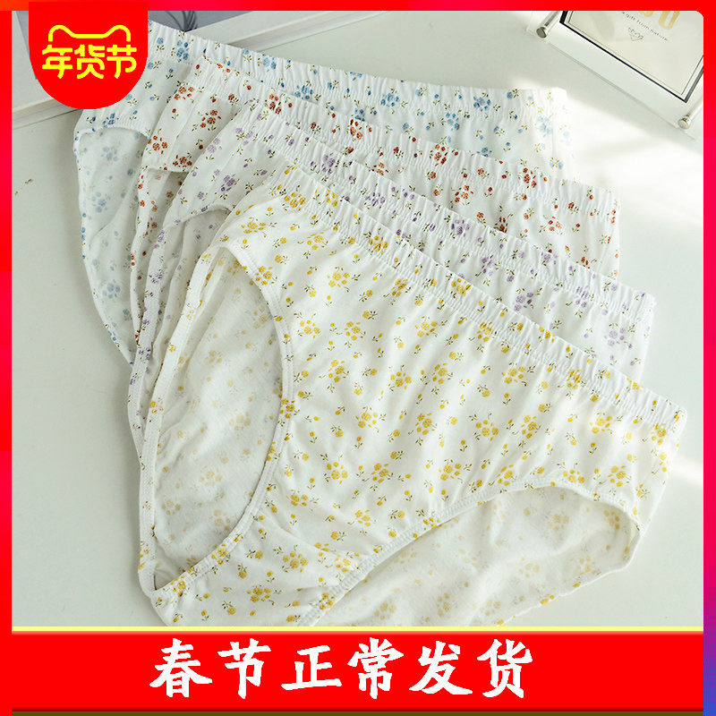 棉元素女士内裤100%棉印花中低腰甜美少女风全棉女三角裤LM506