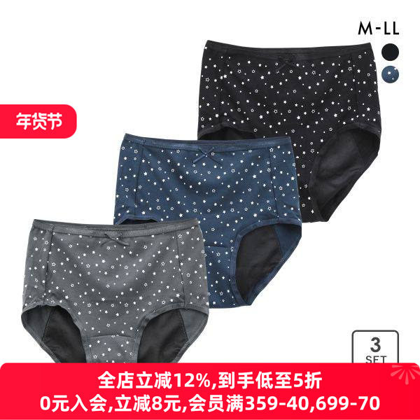 诗萝涵朵SHIROHATO女士生理内裤纯色量多夜用款弹力三角内裤3条装