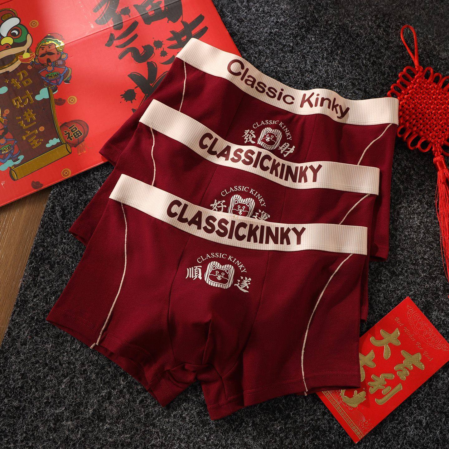 男士鸿运内裤舒适透气四角裤本命年喜庆新年结婚中腰平角裤