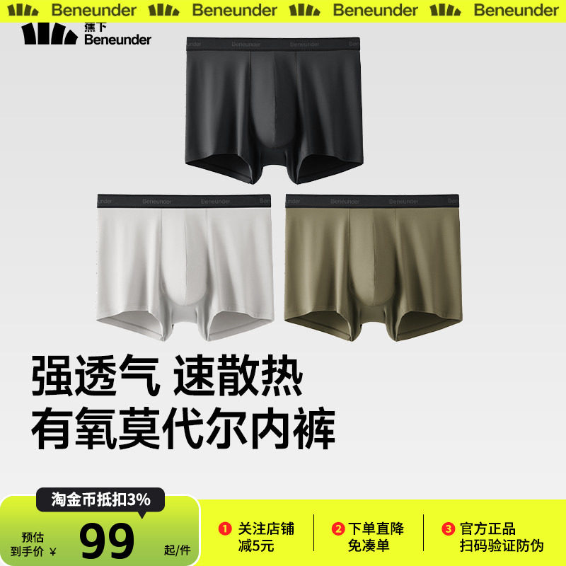 蝶安芬60S莫代尔男士内裤无痕纯色透气柔软纯棉10A抗菌平角内裤