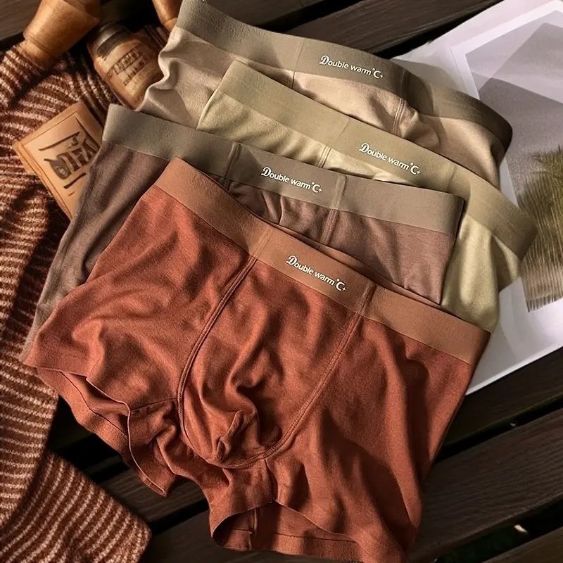 冬季保暖内裤男中腰男内裤加绒加厚抗寒四角短裤防寒平角裤衩裤头