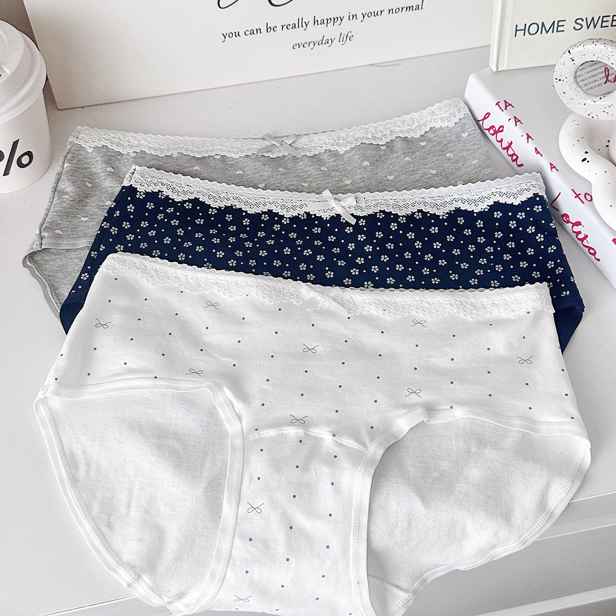 冰丝女士内裤蕾丝边波点蝴蝶结薄款抑菌纯棉裆中腰清凉透气三角裤