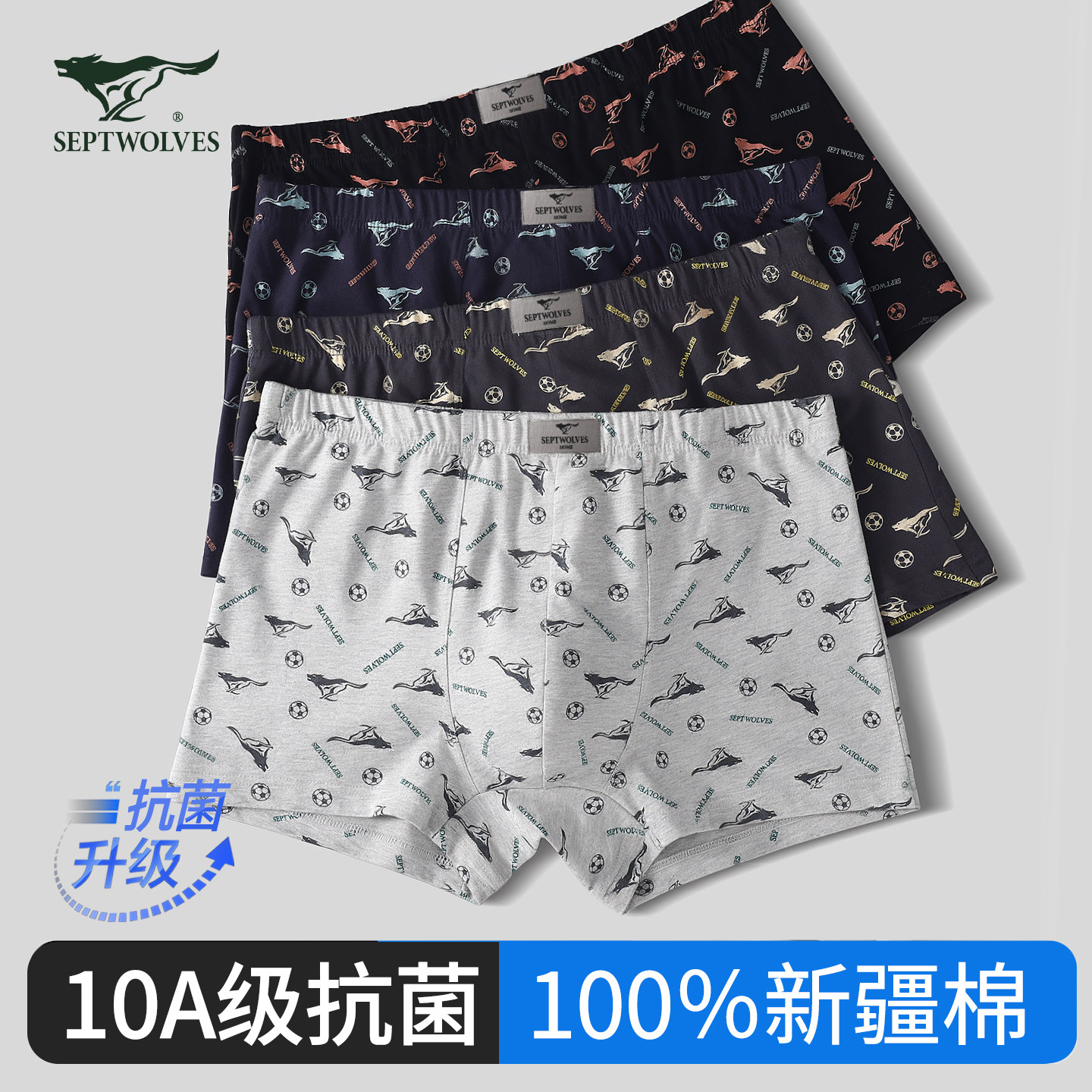 男士内裤纯棉裆提花平角成人舒适透气青年男生中腰大码四角内裤头