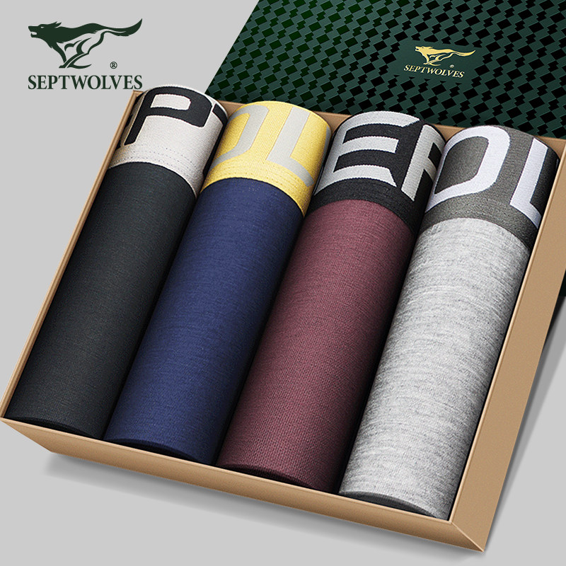 古妃正品3条盒装无痕莫代尔男士平角内裤艾草抗菌透气四角短裤头