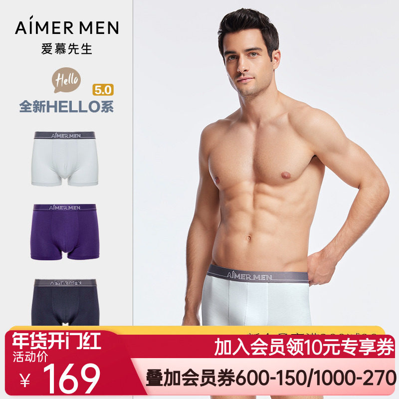 【3件包】爱慕先生平角裤HELLO裤系列夏季男士抗菌内裤NS23C235