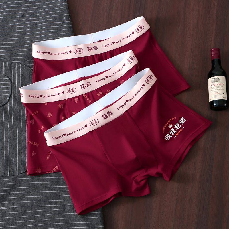 蝶安芬男士内裤男大红色本命年结婚喜庆中腰平角四角柔软内裤礼盒