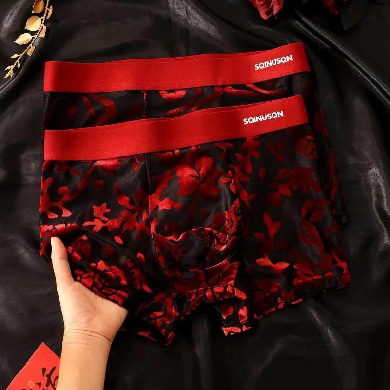 泽宇甄选L优品结P婚J大H红色内裤男本命年四角裤衩喜庆丝绒安全裤