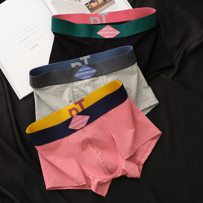 茶茶居家内衣新款男生平角裤男士保暖裤纯色棉内裤中腰男短裤平角
