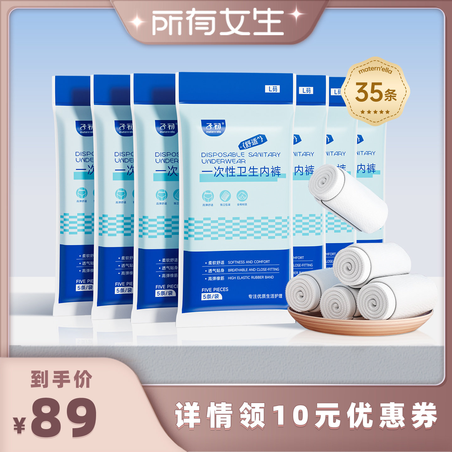 【超柔10条】碧海湾10条7A级抗菌一次性日抛内裤女士出差旅行免洗